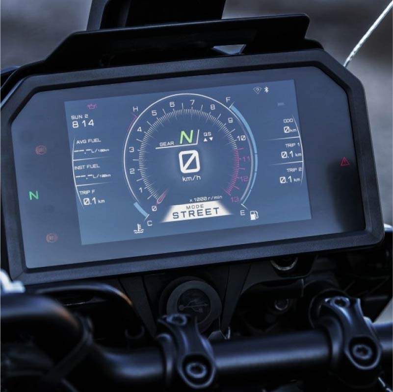 TRACER 9 GT+ es la primera motocicleta Yamaha equipada con Control de Crucero Adaptativo (ACC). El sistema controla automáticamente la velocidad de crucero, la desaceleración y la aceleración para igualar la velocidad del vehículo que va delante y mantener una distancia de seguimiento constante, basándose en cuatro ajustes preestablecidos ajustables, lo que hace que la conducción en carretera sea más suave y cómoda.